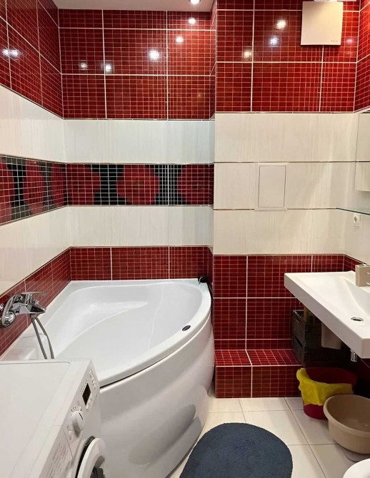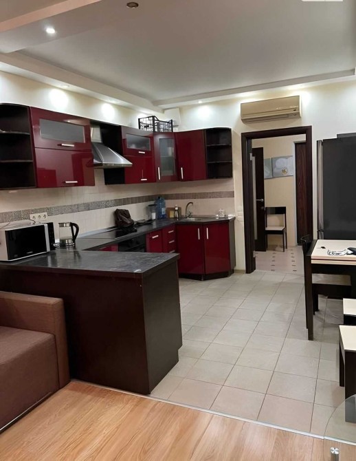 Повністю мебльована та оснащена технікою. У ній є все необхідне для комфортного проживання: два плазмові телевізори, два кондиціонери, пральна та посудомийна машина, мікрохвильова піч, варильна поверхня, духовка, двокамерний холодильник, фен і праска.