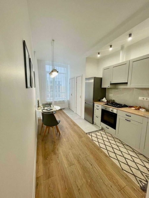 Стильна квартира в престижному районі після ремонту. Компактна кухня-вітальня. Спальня з вбудованою шафою, додатково гардеробна кімната. Дуже багато місць зберігання. Чиста, світла, компактна з новою технікою та новими меблями. Квартира з двоконтурним газовим котлом - гаряча вода та індивідуальне опалення коли хочеш і скільки хочеш.