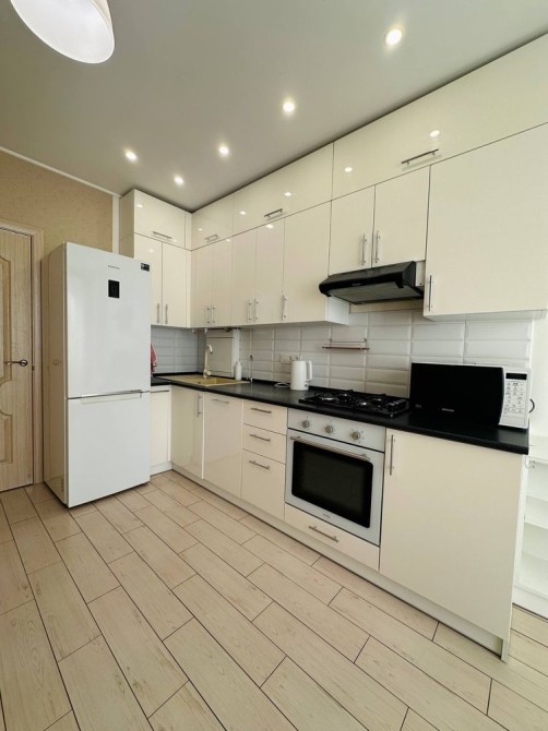 Є все необхідне для проживання: холодильник, чайник, мікрохвильова піч, духовка, плита, зворотній осмос, пральна машина, кондиціонер.