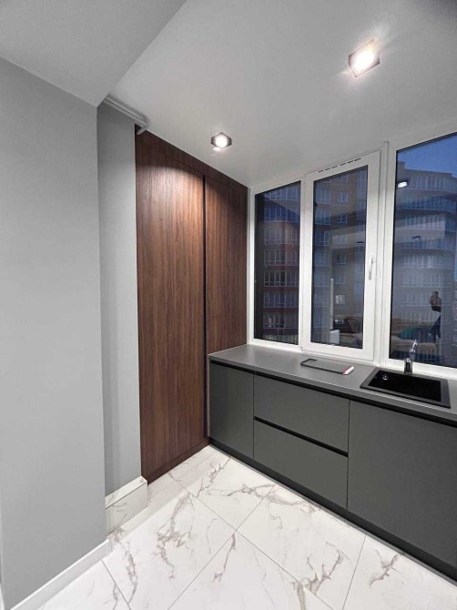 Робоча частина кухні винесена на лоджію.