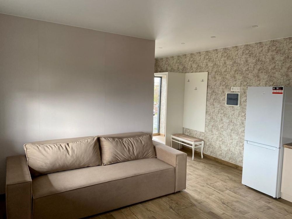Квартира-студія 35 кв м, має окрему ванну з ванною та пральною машиною та окремі 2 бойлери(кухня та ванна)! Кухня:холодильник, дух шафа, варильна поверхня, чайник, стіл та стільці. Кімната з розкладним диваном, шафою -купе, кушетки.