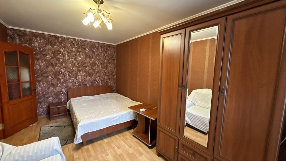 3кімнатна квартира, перебудована у 2кімнатну. Кухня-студія має телевізор, кондіціонер, диван, софу, посудомийну машину, пральну машину, витяжку, духову піч та вихід на балкон. Вікна кухні виходять у двір. Вікна спальні на проспект Миру. В спальні також є кондіціонер та телевізор. Ванна велика, має вуглову ванну та бойлер. Підійде для сімї з 3 людей. Поряд знаходиться бібліотека, магазин, море, кафе, банк та парк. Здається з проживанням і влітку також, без виселення. Деталі за телефоном.