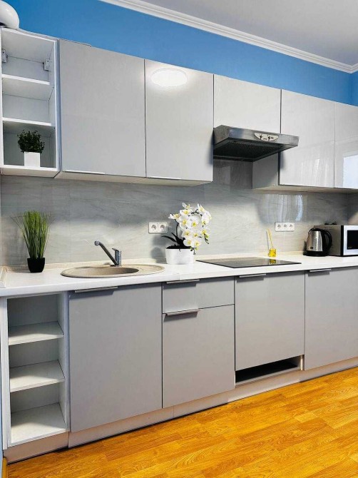 - Простора кухня-вітальня з з обідньою зоною та окремим робочим місцем