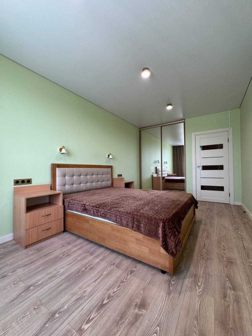 • Світла спальня з великим ліжком та шафою-купе (також доставлено ТЕЛЕВІЗОР Smart TV та компʼютерний стіл)