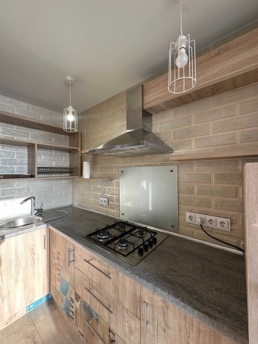 Кухня з ГАЗОВОЮ плитою, меблями та технікою, сумісний санвузол.