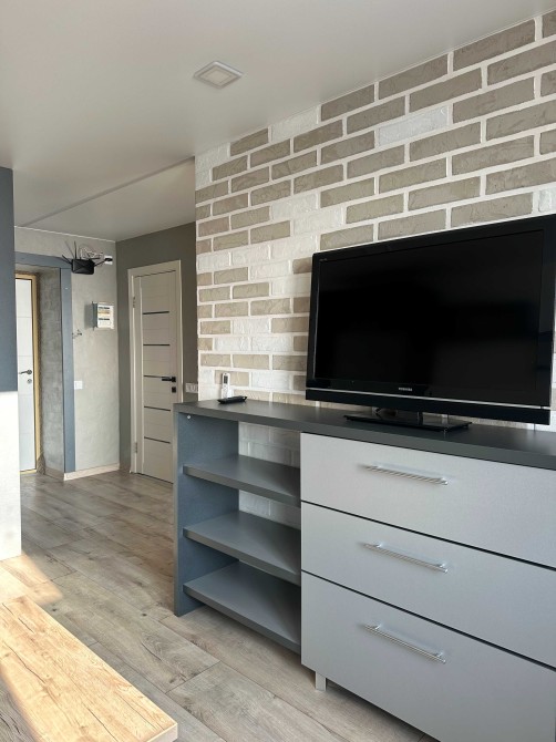 Планування: окрема кімната з кондиціонером, великим телевізором, розкладним диваном, двоспальним ліжком, шафами.