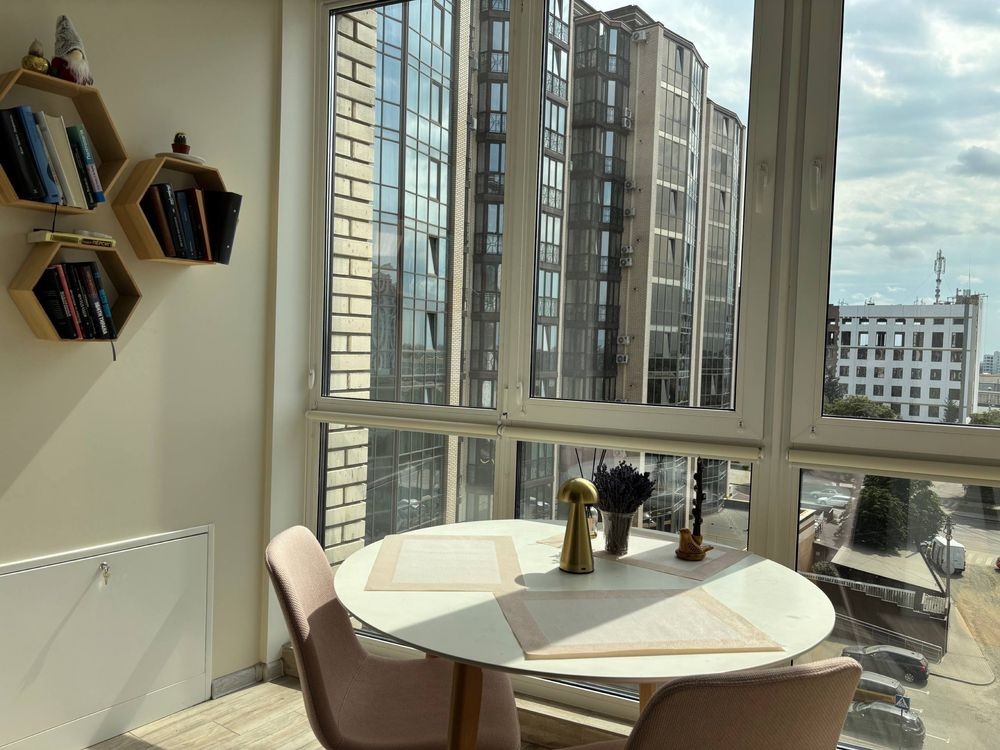 Квартира розташована в сучасній новобудові, навколо озеленена прибудинкова територія з дитячим майданчиком. До центру усього 5 хв. Поряд Київський майдан, центральний парк, магазини, кафе, супермаркети та зручний громадський транспорт.