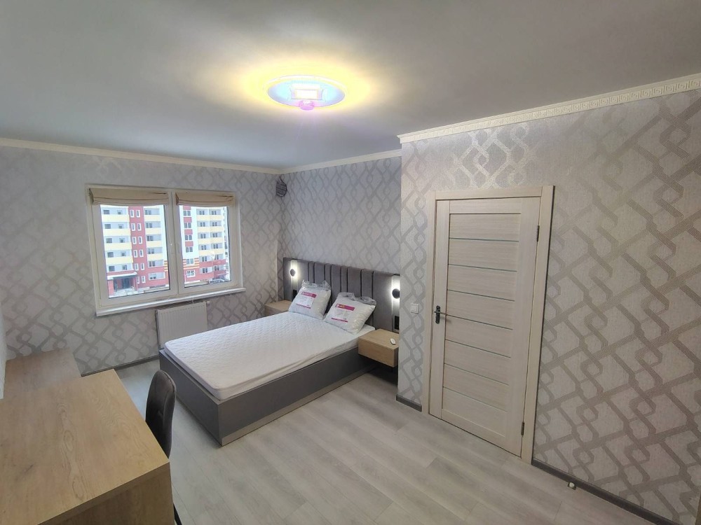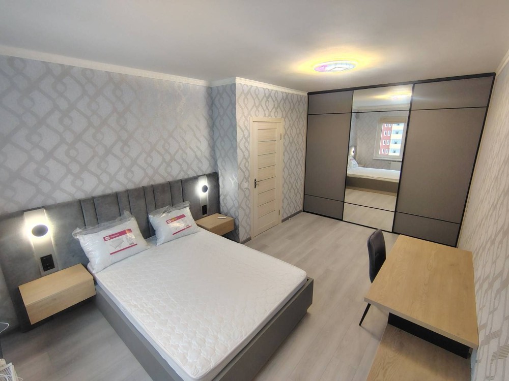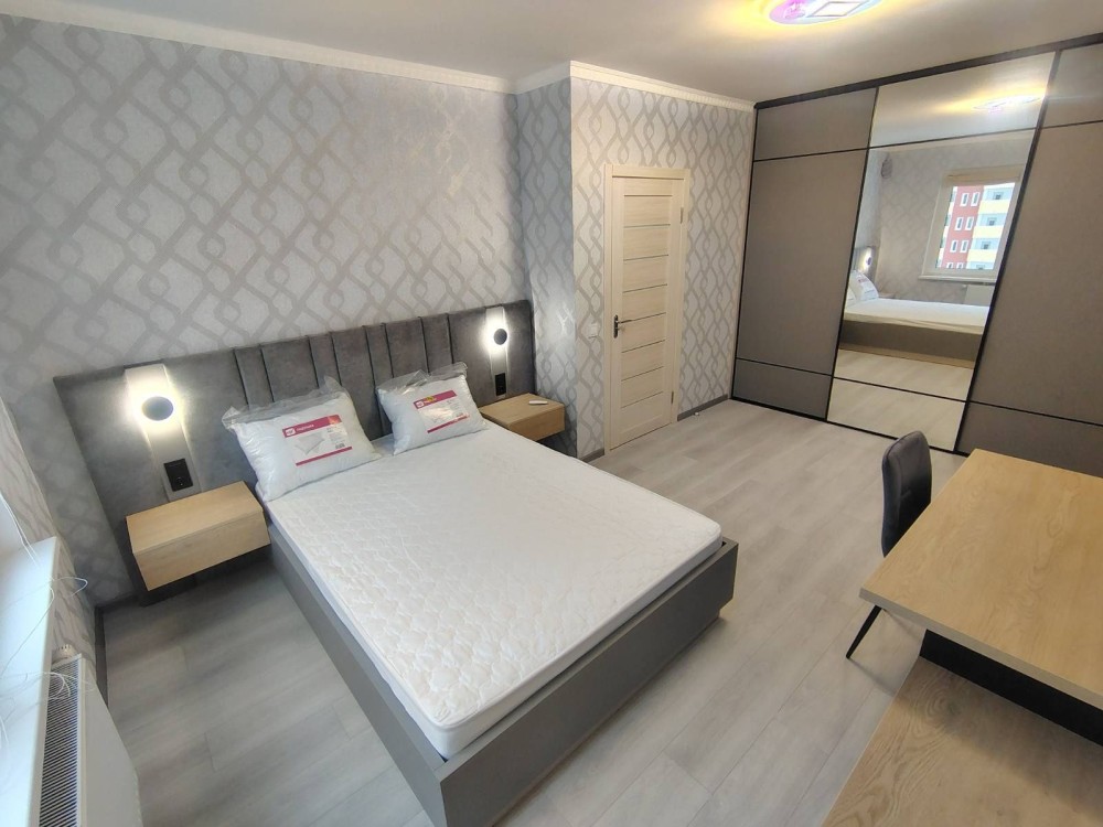 Окрема спальня-вітальня з комфортним ліжком та ортопедичним матрацом. Шафа-купе, письмовий стіл.