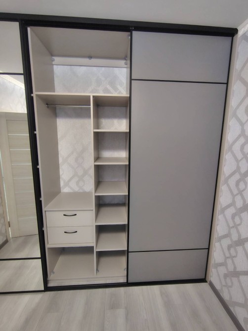 Коридор облаштований меблями для зберігання верхнього одягу та взуття.