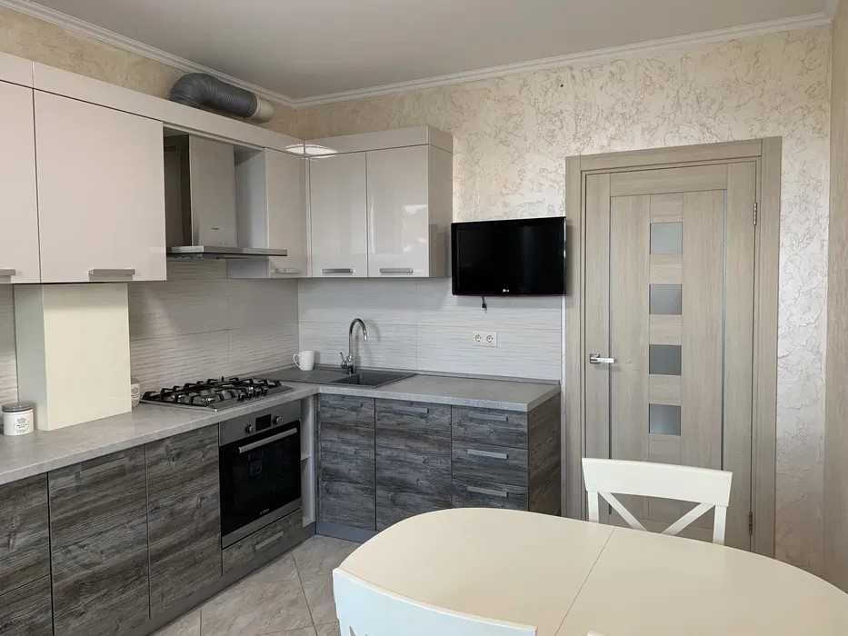 • Кухня зі всім необхідним: газова плита, електрична духовка, посудомийка, холодильник, ТВ 32", перший балкон.