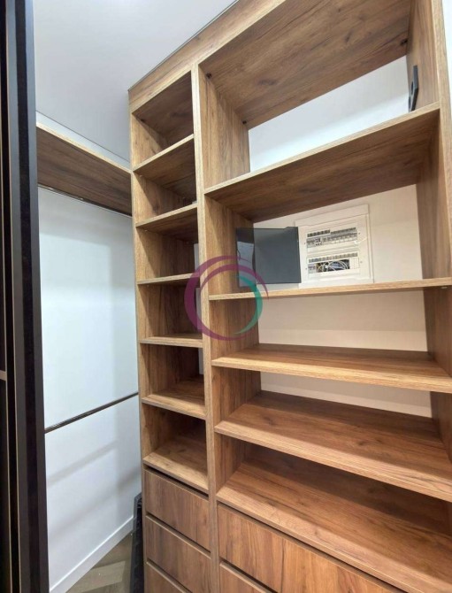 У квартирі облаштована окрема спальня з комфортним двоспальним ліжком, приліжковими тумбами та стильним дзеркалом. Також передбачена б’юті-зона, що ідеально підійде для щоденного догляду, та зона відпочинку з м’яким диваном. Є гардеробна, яка дозволяє зручно організувати зберігання речей, а також просторий коридор з прихожою.