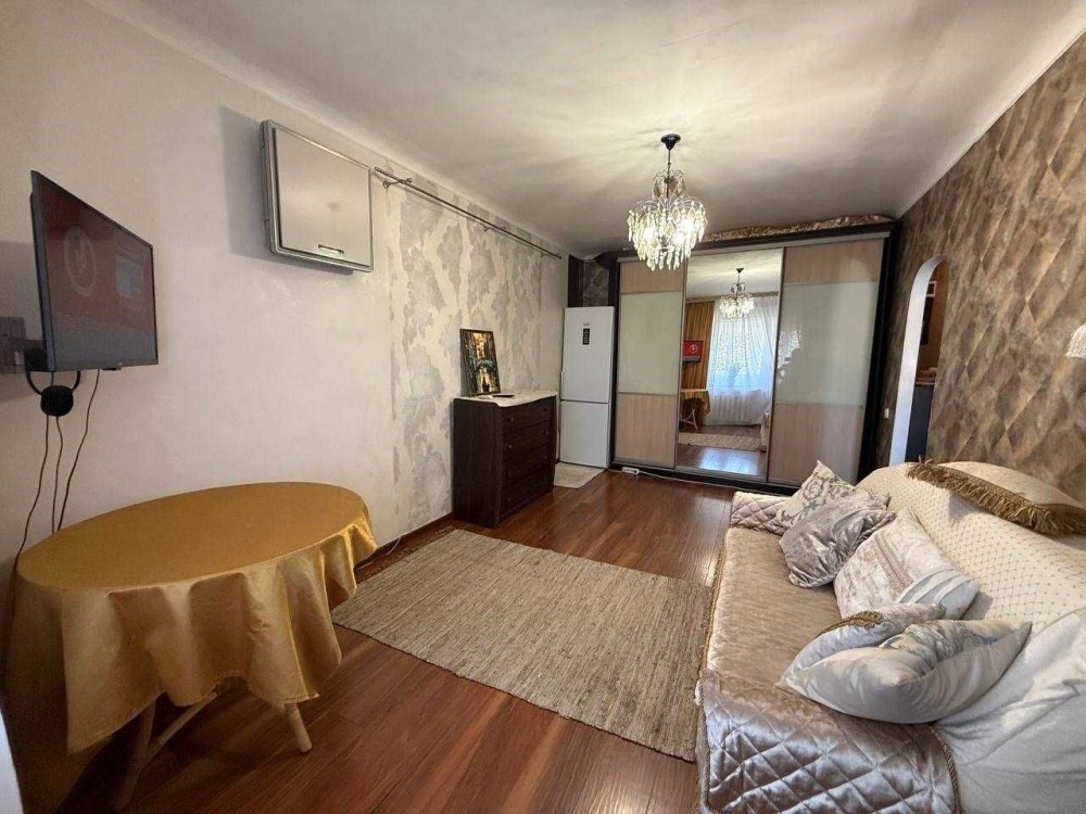 Квартира у доброму стані, укомлектована всіма меблями та технікою: телевізор, холодильник, кондиціонер, газ. колонка, пральна машина, газ. плита, духовка, витяжка. Є балкон - засклений. Можна з дітками, можна на короткий термін 1-2 міс, але без тваринок.