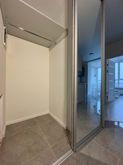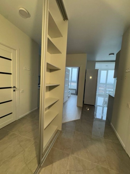 Квартира з новим ремонтом. Простора прихожа з великим шафою-купе та зручними полицями.