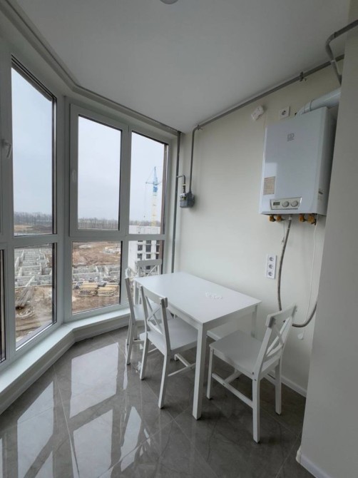 Кімната та кухня - світлі, з панорамними вікнами та приємним сучасним інтер’єром.