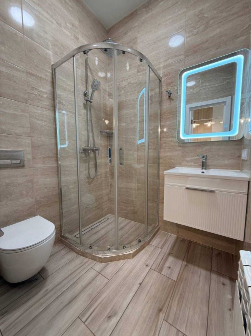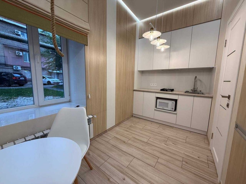 Квартира з новим євро ремонтом, укомлектована меблями та всією технікою: газ. колонка, прально-сушильна машина, холодильник, мікрохвильова піч, газ. плита, витяжка, система очищення(фільтрації) води. Диван купимо. Тепла підлога по всій квартирі та електроролети на вікнах. Балкону немає. Є відеоогляд.