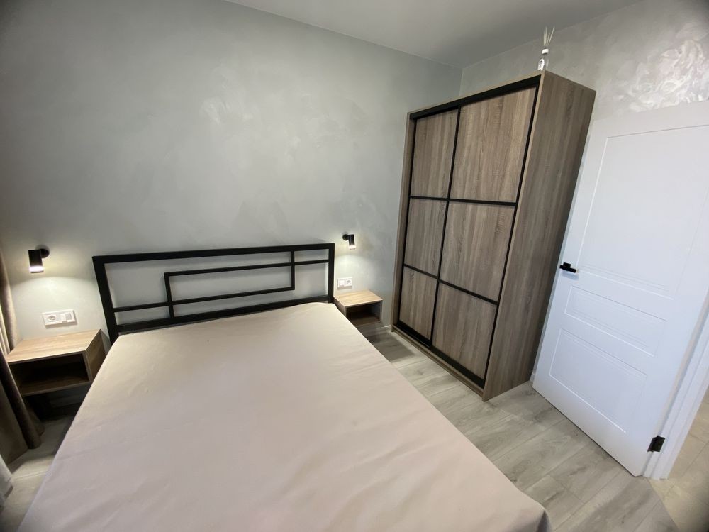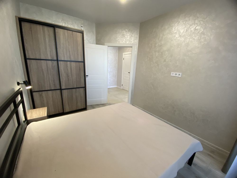 Квартира з якісним та новим ремонтом. Чудовий стан. На стінах декоративна штукатурка. На підлозі плитка та ламінат. Якісно розведена сантехніка. Багато освітлення та розеток. Квартира укомплектована усім необхідним для комфортного проживання – меблі та побутова техніка. Повноцінне двоспальне ліжко з новим ортопедичним матрацом. В спальній кімнаті присутня велика шафа. Облаштована велика гардеробна кімната. Вбудована кухня з технікою. Встановлений велюровий диван на кухні. Кухонний стіл та кухонні стільці. Бойлер на 80 л. Повноцінна ванна. Туалет інсталяція. Дзеркало з підсвіткою. Плазмовий смарт-телевізор у кухні.