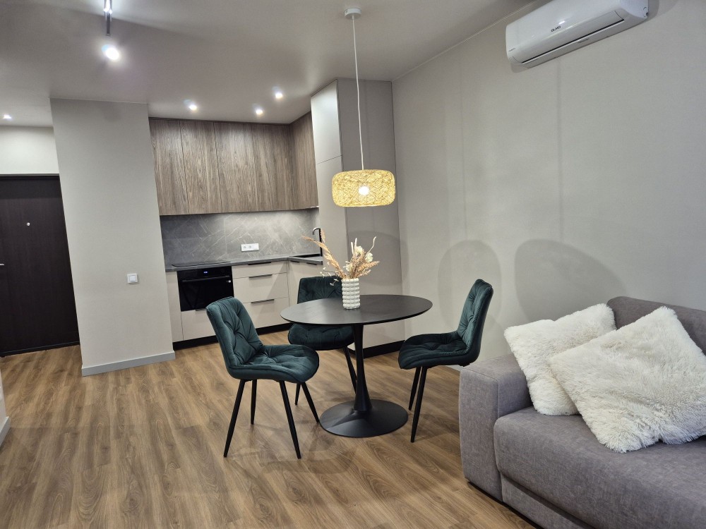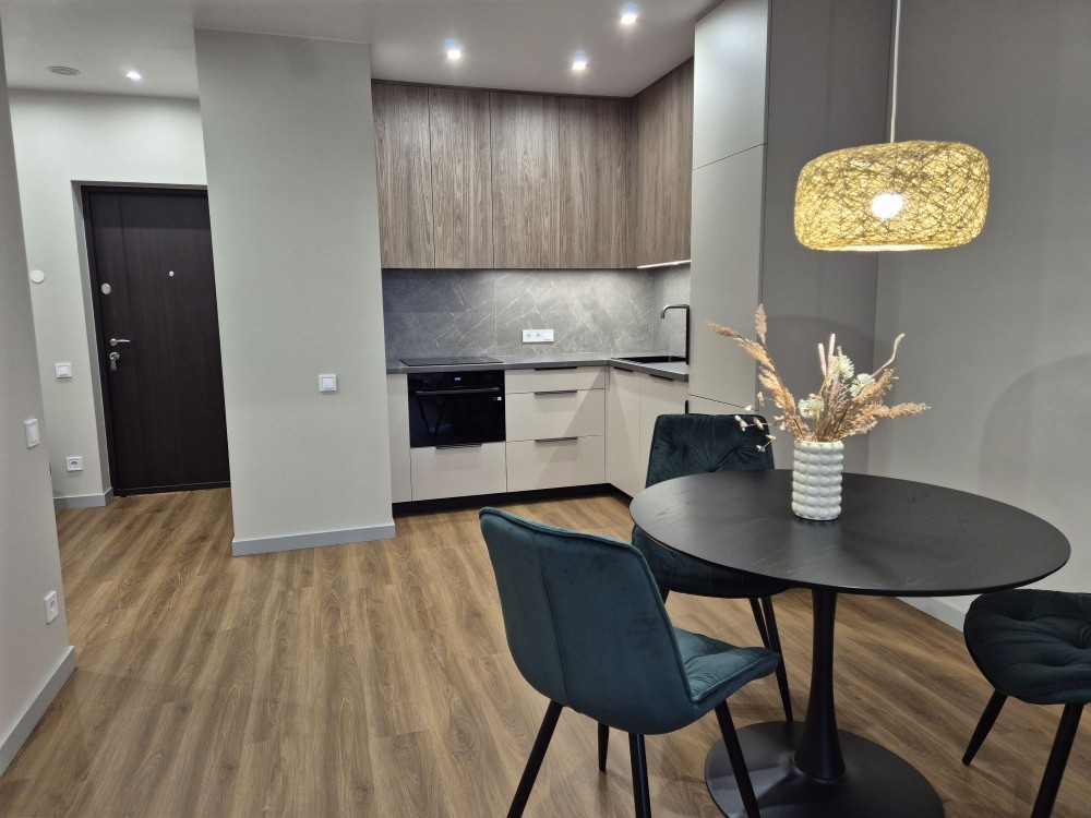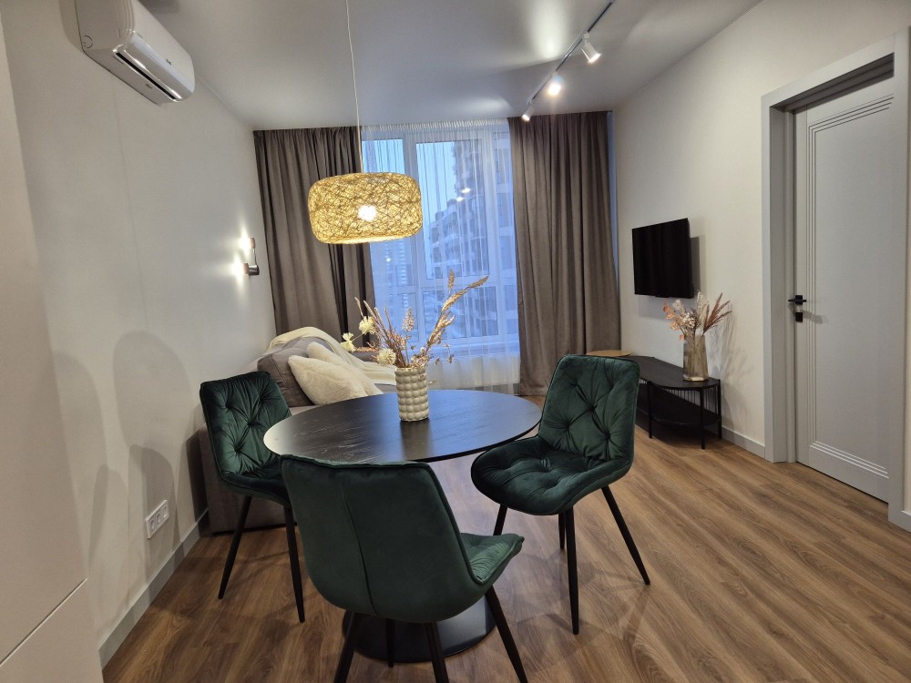 Квартира з новим якісним ремонтом, вдало використаний простір квартири: велика кухня вітальня, окрема спальня з гардеробною, просторий санвузол, укомплектована всією технікою (посудомийка, вбудований холодильник, пральна машина, духова шафа з функцією мікрохвильвки, варильна поверхня, бойлер, ліжко 160*200см з підйомним механізмом, БЕЗ пружинний матрац, зручний розкладний диван 250см. на кухні). Перша здача. ЖК Варшавський комплекс закритого типу зі своєю охороною, дитячими та спортивними майданчиками, алеями, місцями відпочинку. Добре розвинена інфраструктура та зручна транспортна розв'язка. Поруч школи, дитячі садочки, магазини, ТРЦ Ретровіль, ліс, озера. До метро Нивки, метро Оболонь 15-20 хвилин