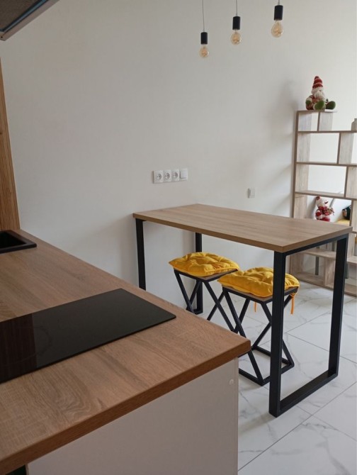 Квартира з сучасним ремонтом в новому , укомплектована меблями: диван розкладний , ліжко, тумби, полички, стіл, стільці. Опалення індивідуальне електричне, санвузол суміжний з душовою.