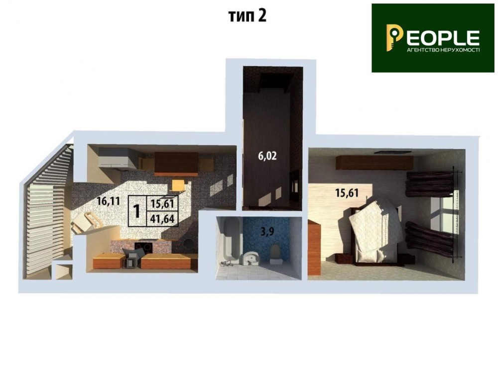 • Общая площадь 42 м2