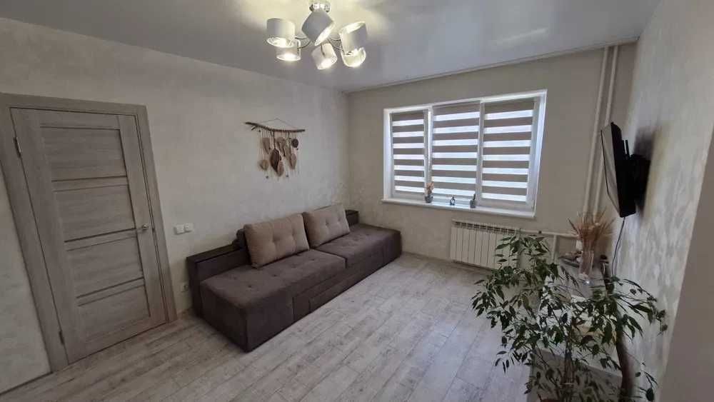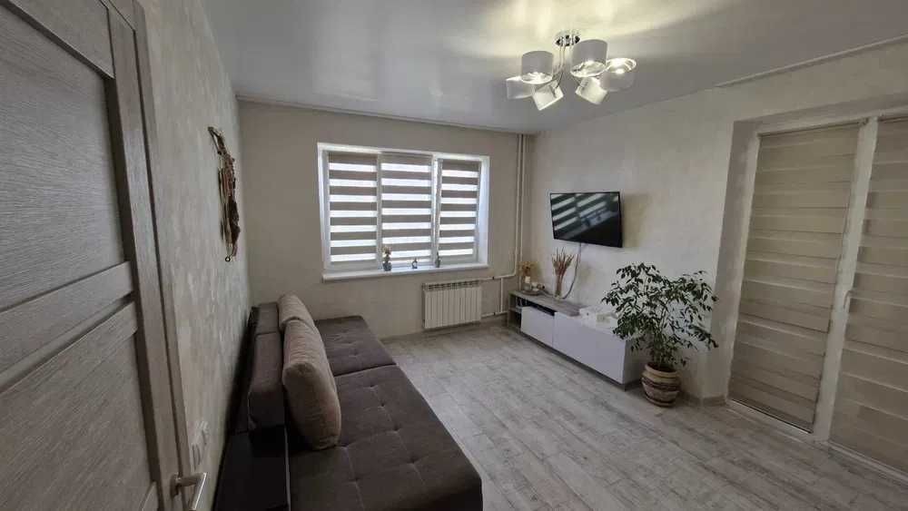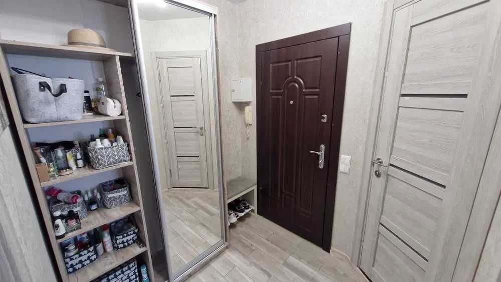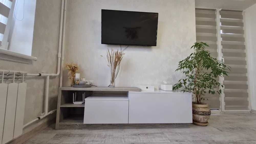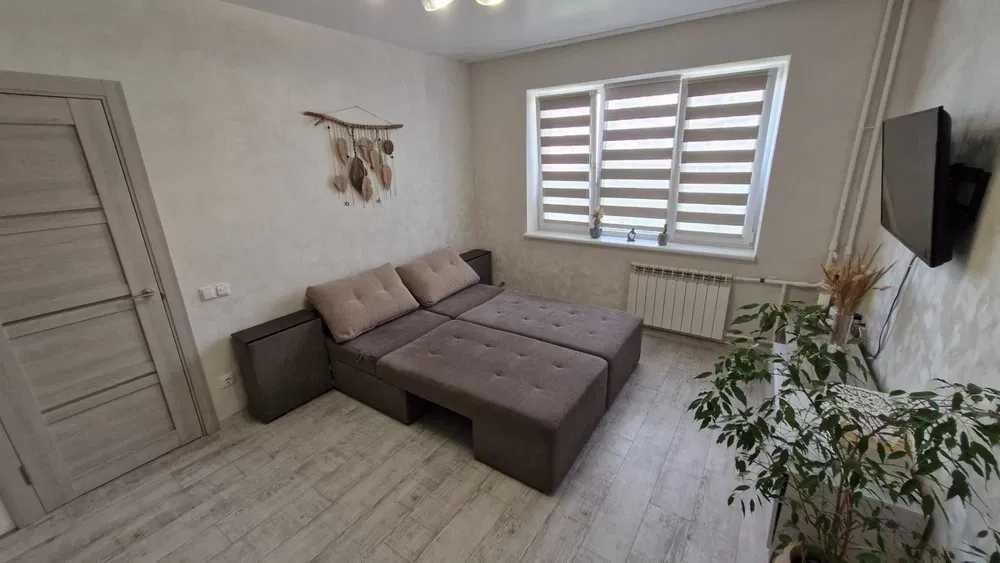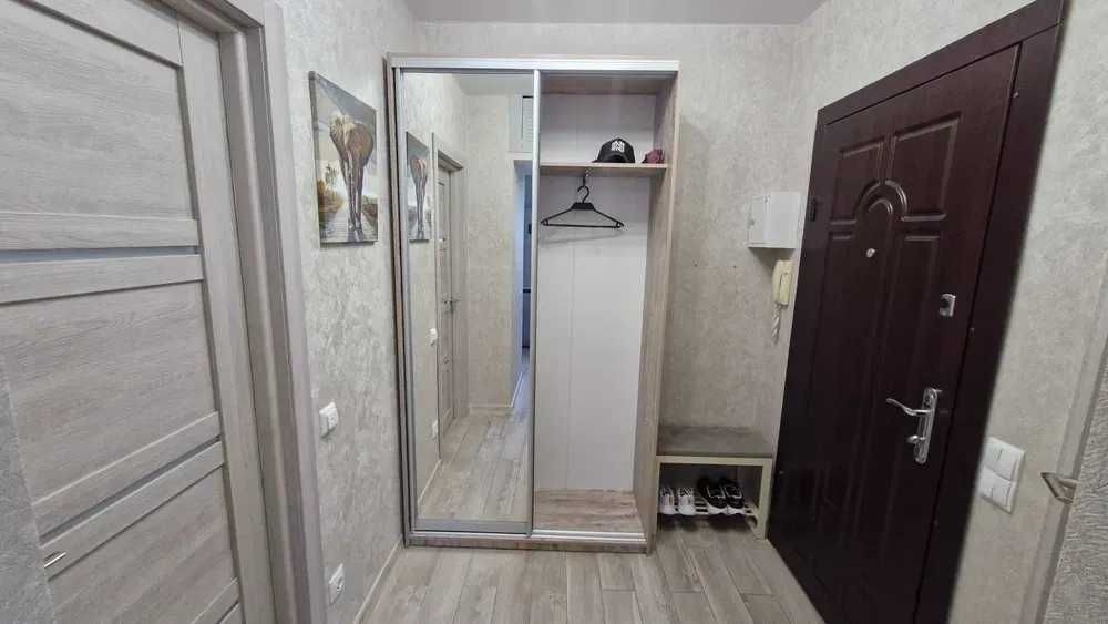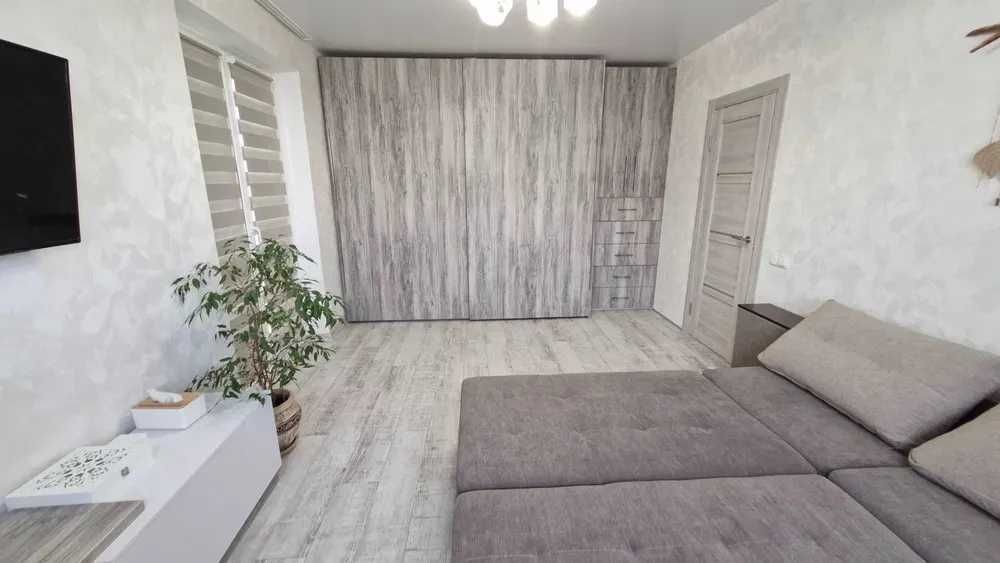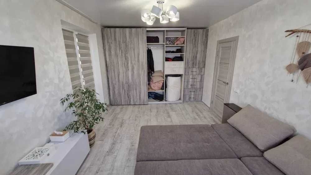 Наявна велика шафа, трансформер диван-ліжко, телевізор 43 дюйма, бойлер, гаряча підлога по всій квартирі (електро), балкон засклений.