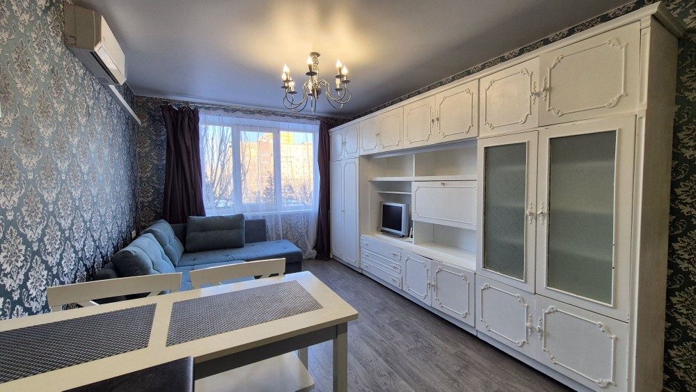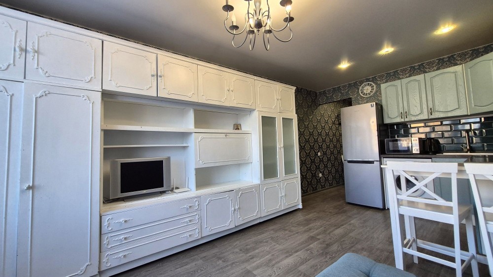 Квартира забезпечена усією необхідною меблею та технікою: зручний розкладний диван,кондиционер, телевізор, холодильник, мікрохвильова піч, електрочайник, електроплита, витяжка, пральна машинка, бойлер, сушарка для рушників, праска, пральна доска, сушарка. Також присутній кухонний інвентар та постіль .