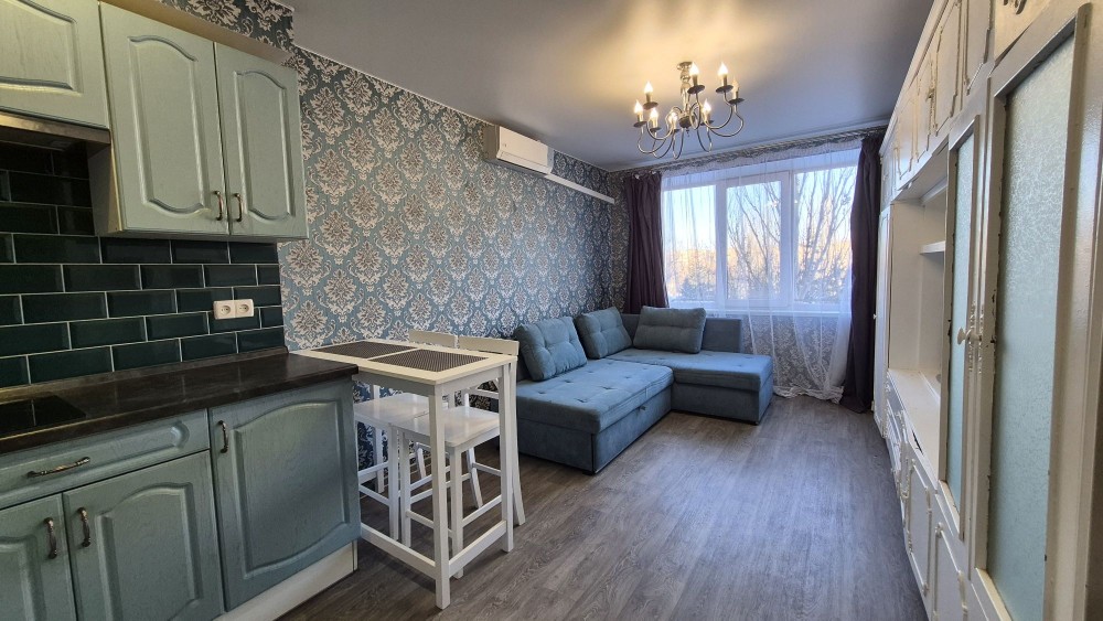 Оренда стильної однокімнатної смарт-квартири площею 23 м² за адресою пер.Добровольців, 10 Перемога-6. Розташована на середньому 5/9поверсі, що забезпечує комфорт та затишок.