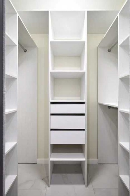 Велика гардеробна, продумане освітлення та планування.