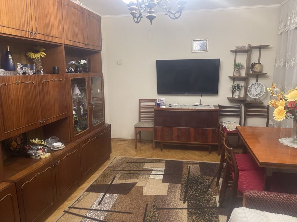 У вітальні: диван, крісла, стінка, вихід на балкон, балкон засклений. Велике прохання: оренда без котика.