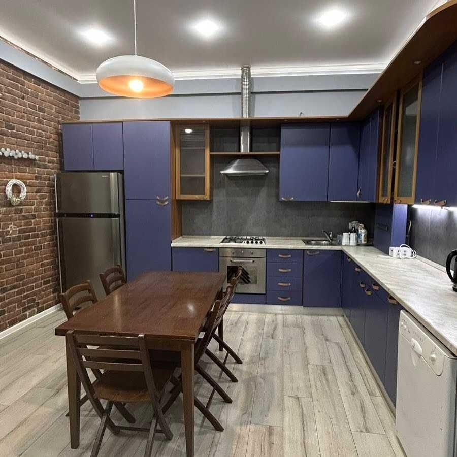 Оснащення: повний комплект побутової техніки — посудомийна машина, пральна машина, телевізор, холодильник, духова шафа, витяжка