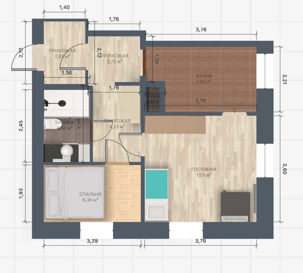 • Общая площадь 42 м2