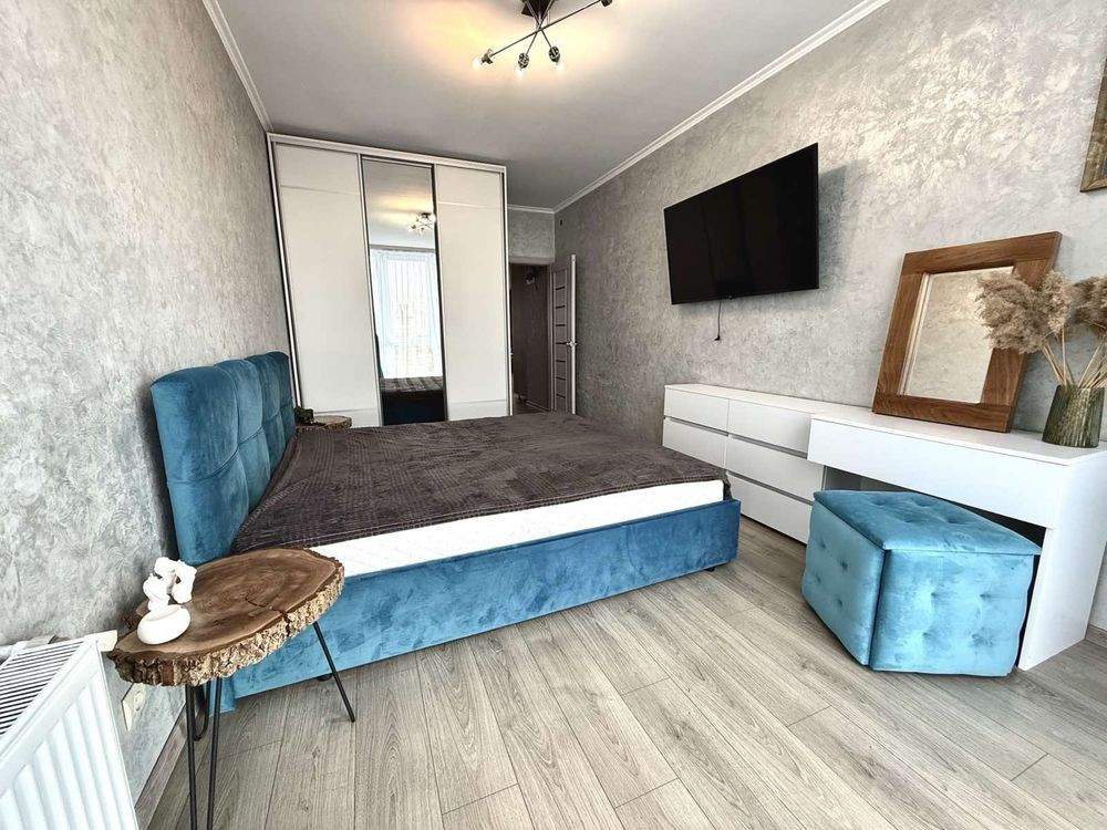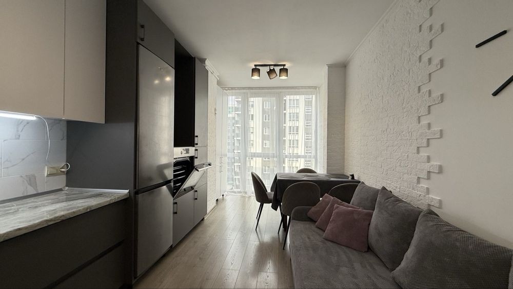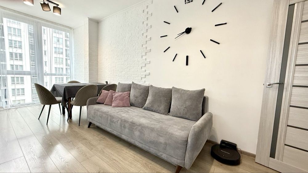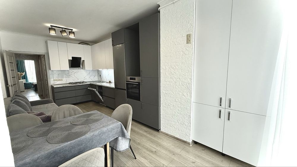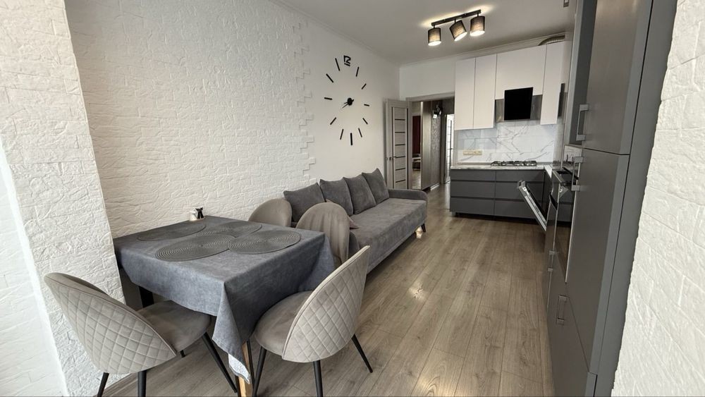 Здається простора квартира з сучасним ремонтом та зручним плануванням — кухня-вітальня + дві окремі кімнати.