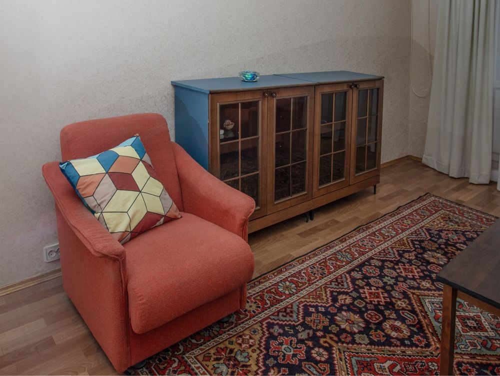 Квартира дуже затишна, чиста і тепла з продуманим дизайном. Обладнана меблями, у тому числі нові: кухня, диван, матрац на ліжко, умивальник. Балкон великий засклений, рами дерев"яні. Побутова техніка: пральна машина, бойлер, холодильник, газова плита з електричною духовкою, кондиціонер, пилосос.