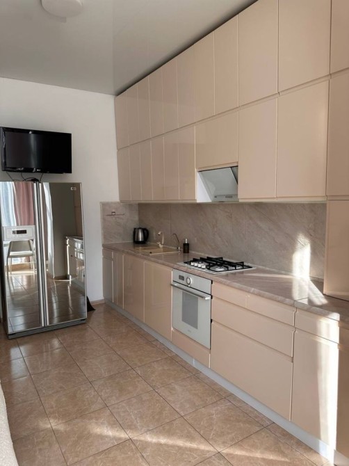 Оснащена усією необхідною побутовою технікою: холодильник, посудомийна машинка, мікрохвильовка, духова шафа, пральна машинка, два телевізори.