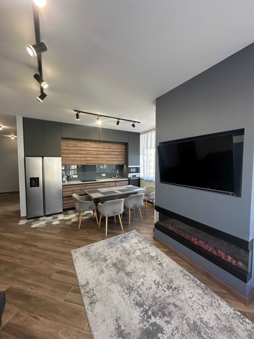 Квартира повністю укомплектована, є весь набір посуду, вмонтована посудомийка, є духова шафа, мікрохвильовка, прально-сушильна машина, є сигналізація та відеодомофон.