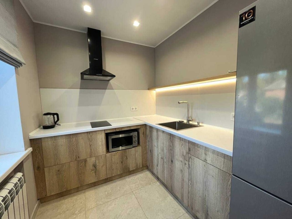 Квартира з євро ремонтом, укомплектована всіма меблями та технікою: холодильник, ел.чайник, ел. варильна панель, витяжка, мікрохвильова піч, пральна машина, ел. сушарка для рушників, бойлер, телевізор, кондиціонер. Тепла підлога у кухні, ванній, коридорі та балконі. Без тварин!