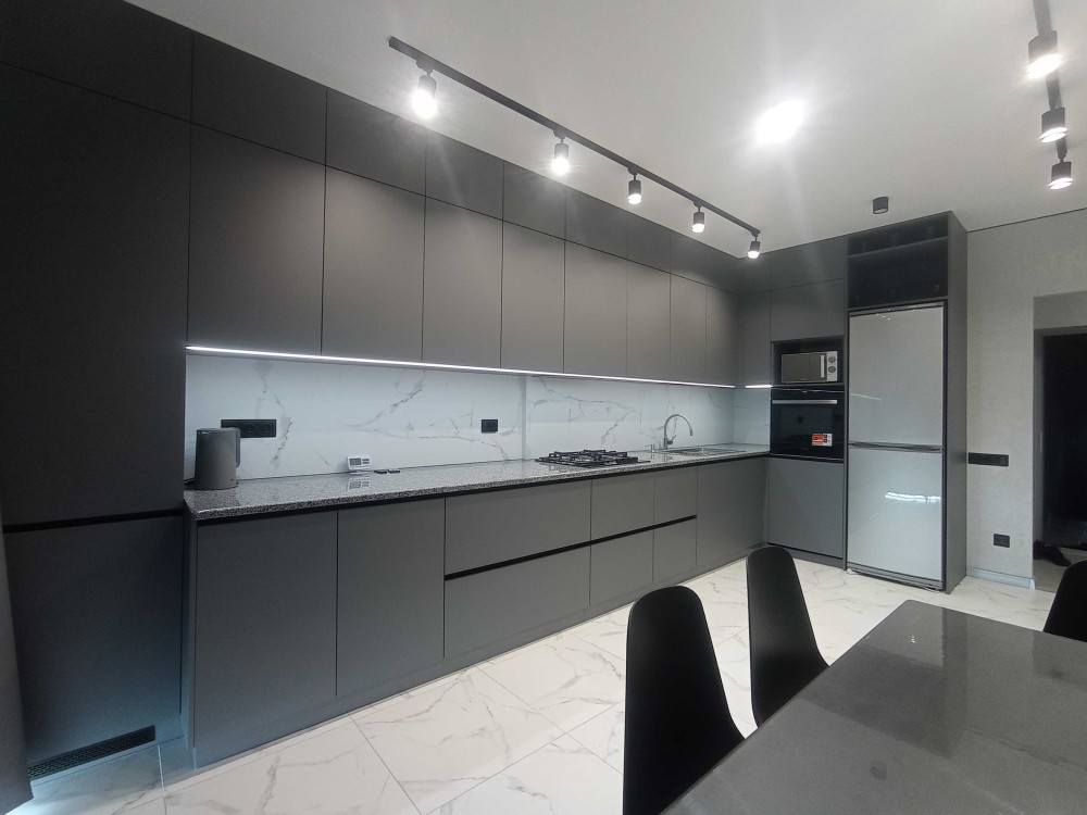 Зроблено дизайнерський ремонт, встановлено різноманітне освітлення, вмонтована кухня, керамічна столешня, якісні меблі в кімнатах, техніка: холодильник, пральна машина, телевізор, м/піч, посудомийна машина, електрочайник, кондиціонер, духова шафа, газова плита, витяжка, wi-fi, сушка для білизни, прасувальна дошка, драбинка. Панорамні вікна. Тепла підлога на кухні, коридорі та санвузлі. Є гардеробна кімната при вході в квартиру. Також є кладова на поверсі.