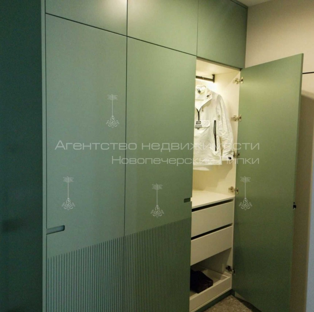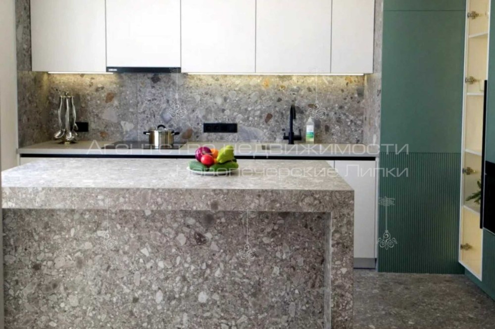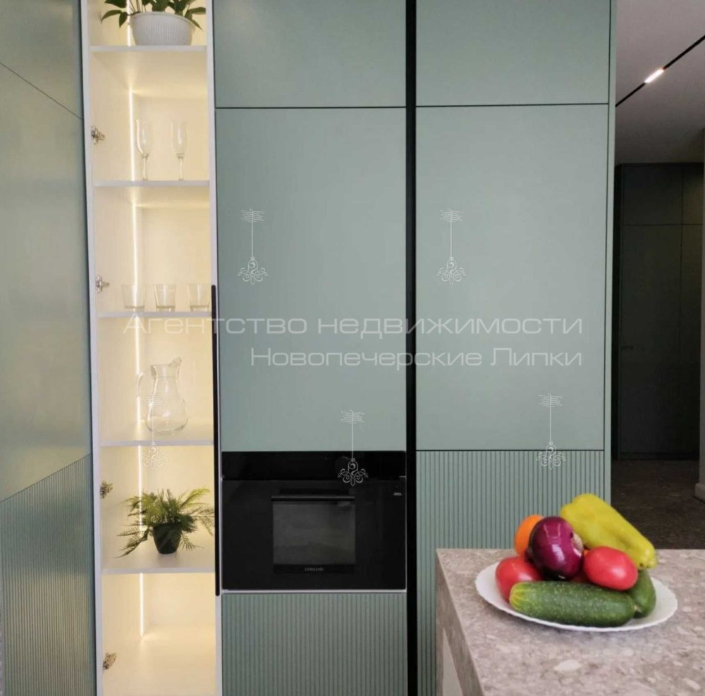 Кондиционер, Подогрев полов, Ванна, Душевая кабина, Мебель на кухне, Гардероб, Сигнализация, Пожарная сигнализация, Видеонаблюдение, Охраняемая территория, Лифт, Грузовой лифт