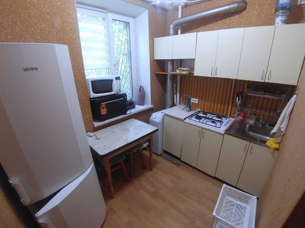 Одна кімната прохідна, друга окрема. В квартирі є вся необхідна техніка та меблі. Двоспальне ліжко, диван, холодильник, газова плита, мікрохвильова піч, переносна духовка, пральна машина, бойлер...
