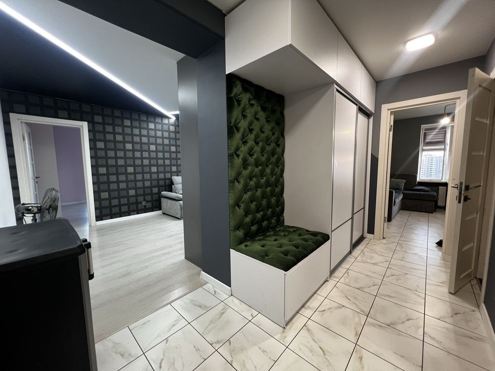 2 кімнатна квартира зі всіма зручностями. Укомплектована меблями та технікою. Сучасний ремонт. Два великих балкона. Один облаштований під робочу офісну зону.