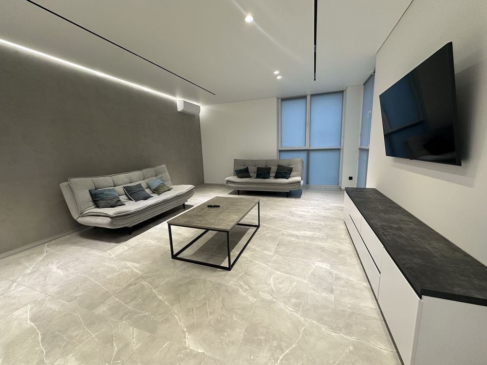 Код: 69. ПОМЕСЯЧНО АРЕНДА АКТУАЛЬНА В ПЕРИОД С 01.09 ДО 30.05 (в летний сезон сдается посуточно от 2-х суток, раннее бронирование от 5-и суток и более). Просторные апартаменты с двумя спальнями в Ж/К «Аркадийский дворец», ул. Аркадийское плато, 5/3, 5/12 эт. дома, общая площадь 120 кв. м. (с учетом террасы). Евроремонт, две отдельные спальни, вторая спальня без окон (установлена имитация окон), студия-кухня (24 кв. м.) с мягкой мебелью, диван раскладной. На кухне есть духовка и посуда. Выход на большую террасу с летней мебелью и шикарным видом на море. В санузле - ванна. Закрытая, охраняемая территория, подземный паркинг (за отдельную оплату), комплекс находится прямо над пляжем «Аркадия» в 150-и метрах от моря. Самый популярный курортный район и центр развлечений Одессы, район пляжей, ночных клубов, аттракционов, кафе и ресторанов. Аренда от 1-го месяца и более. Стоимость может варьироваться в зависимости от срока аренды. Перед просмотром уточните наличие и детали по VIBER, WHATSAPP или TELEGRAM, указав «КОД» из объявления. КОМИССИЯ ЗА УСЛУГИ РИЭЛТОРА - 50% от месячной аренды (разовая оплата при оформлении договора).