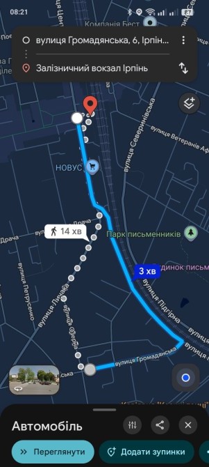 В центрі Ірпеня, поруч з центральною площею та Новусом.