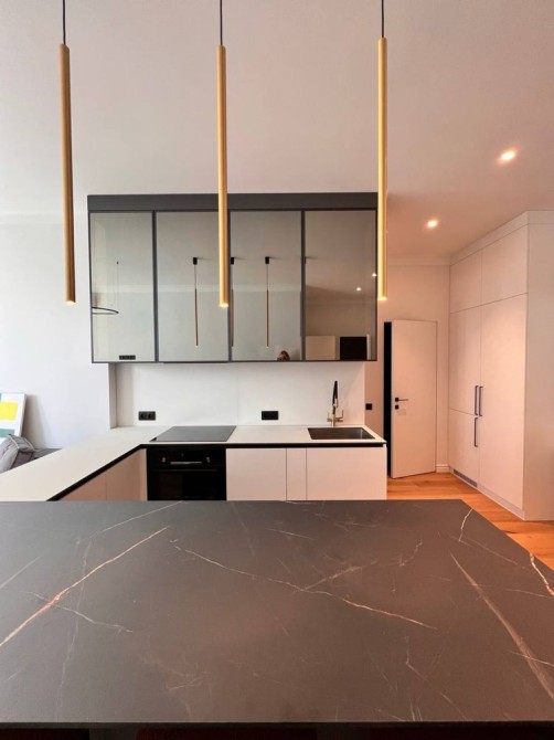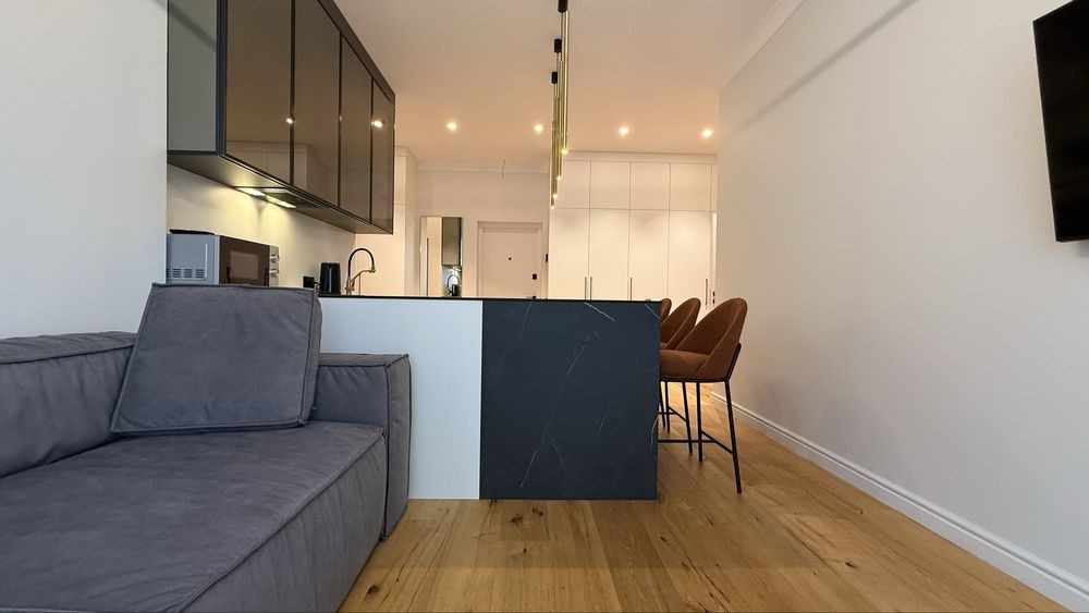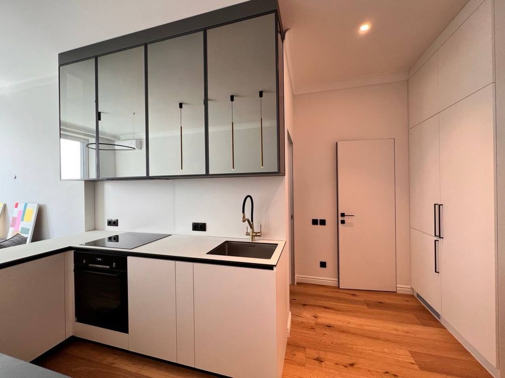 Кухня вбудована, з усією побутовою технікою. Багато підсвічування. Спальня з двоспальним ліжком, балконом та місткою шафою. Друга спальня обладнана як гостьова - ліжко , вбудовани системи зберігання та ін.
