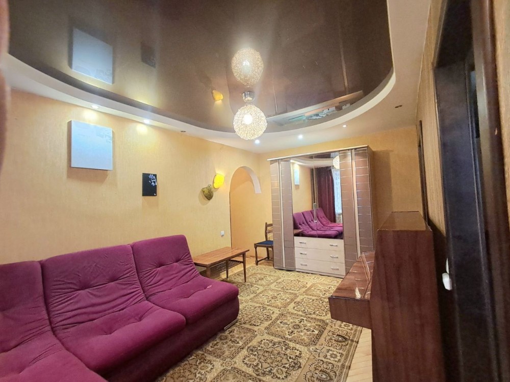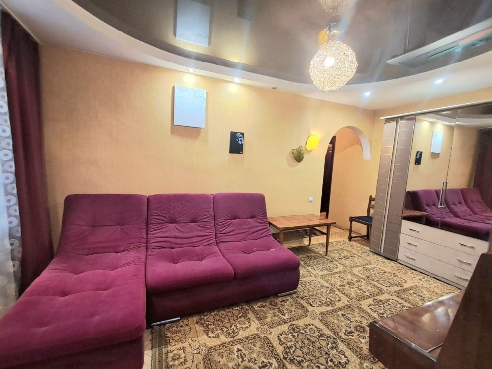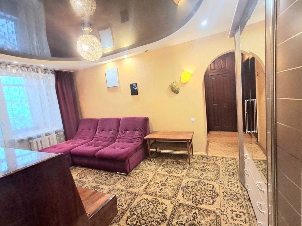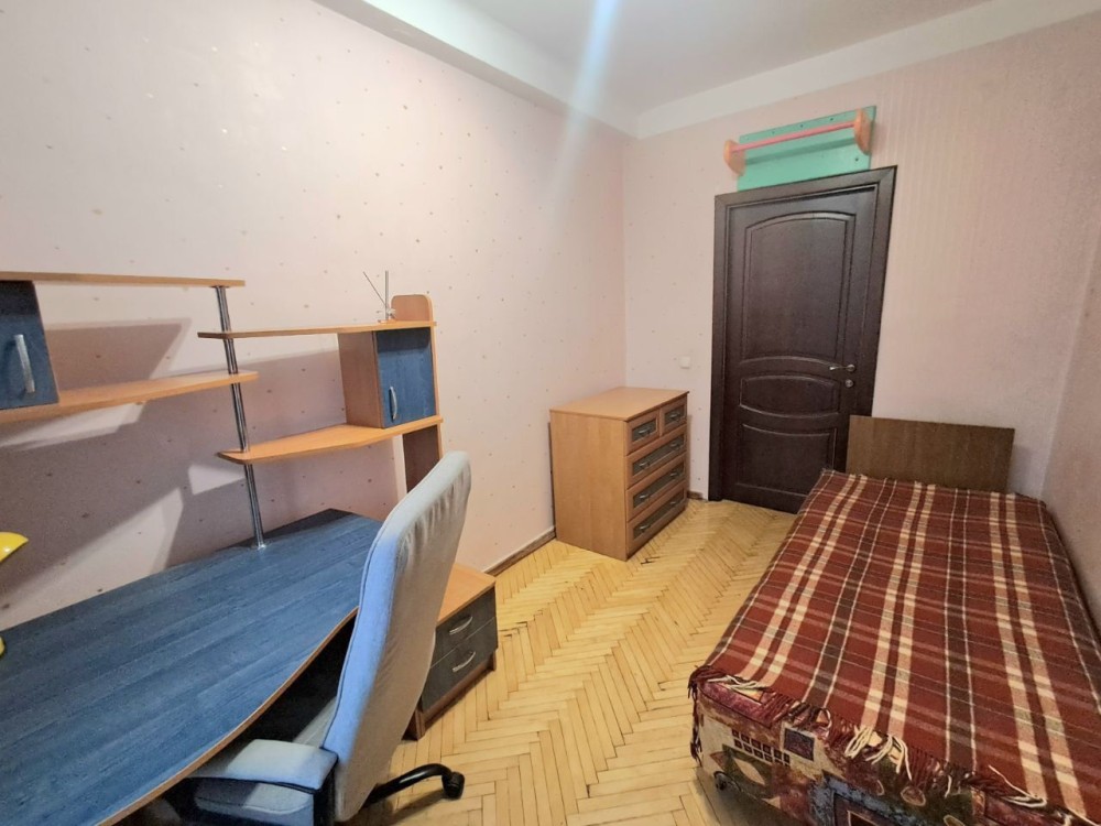 Квартира має дві окремі кімнати та прохідну вітальню. Є засклений балкон. Мебльована: