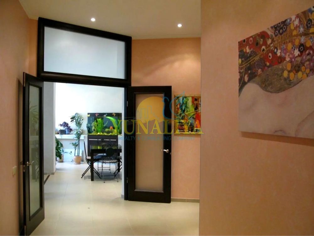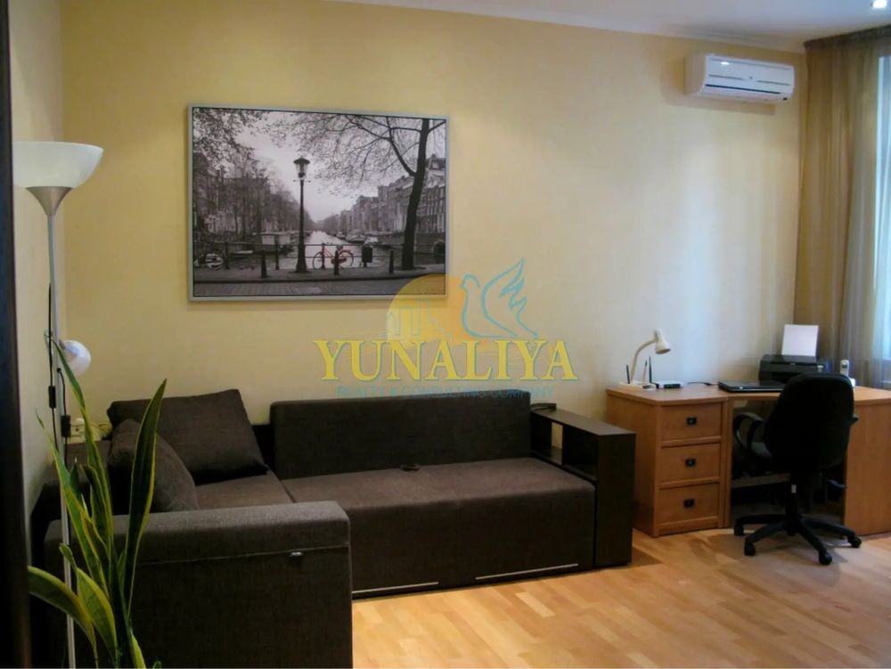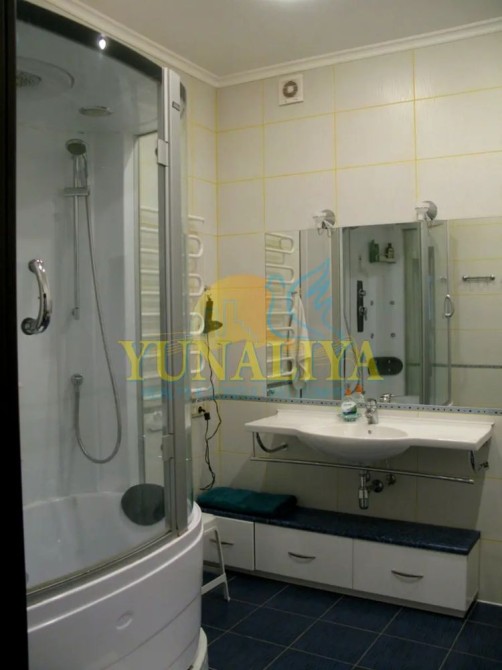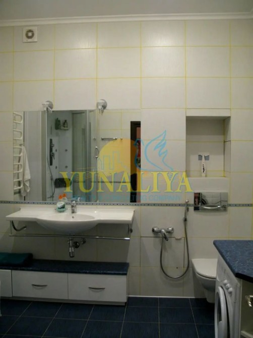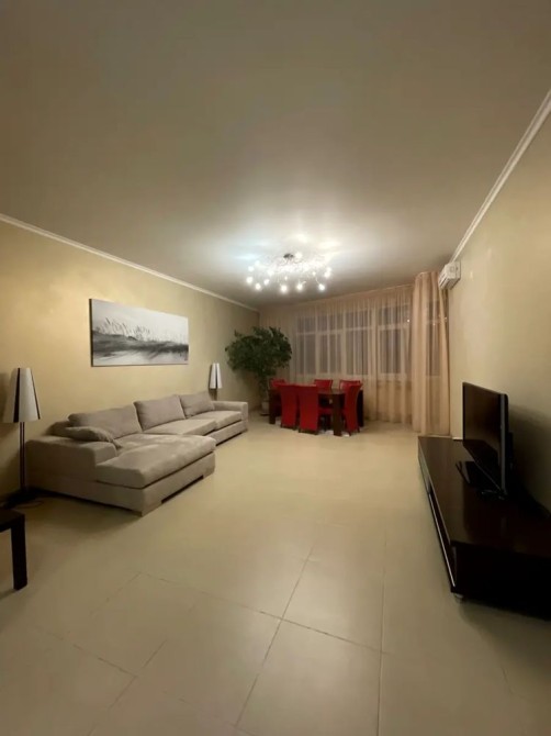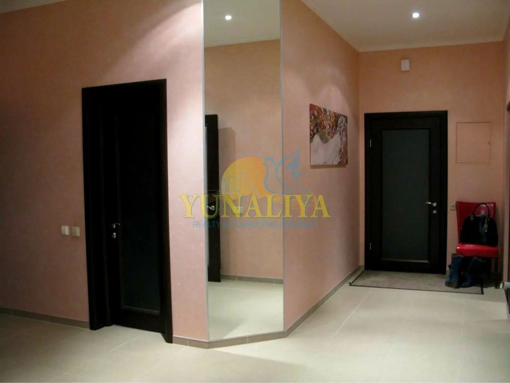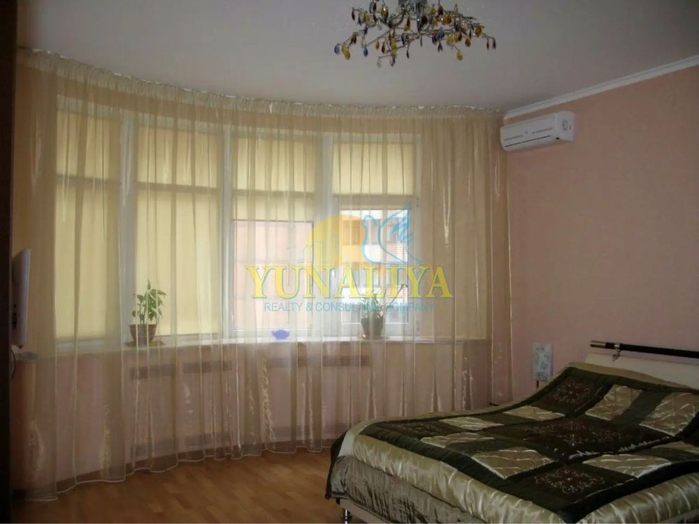БЕЗ КОМІСІЇ! 7/14-поверховий цегляний будинок із закритою охороною. S - 126,7 м². Планувальне рішення: відкритий простір вітальні та кухні-їдальні, S - 53,7 м², спальня - 22,7 м², кабінет (дитяча) - 19, 3 м², 2 с/в. Дизайнерський ремонт. Підлога з підігрівом, 4 кондиціонери, зимовий сад, акваріум, супутникове TV, Internet. Квартира мебльована і обладнана побутовою технікою.