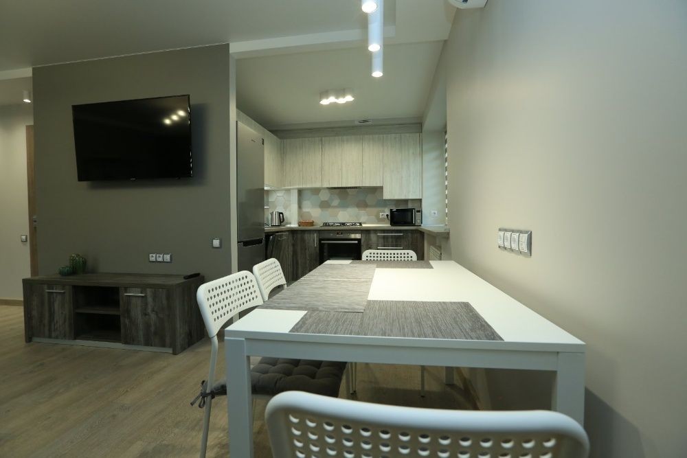 оснащена квартира абсолютно всією необхідною побутовою технікою та меблями для комфорту.