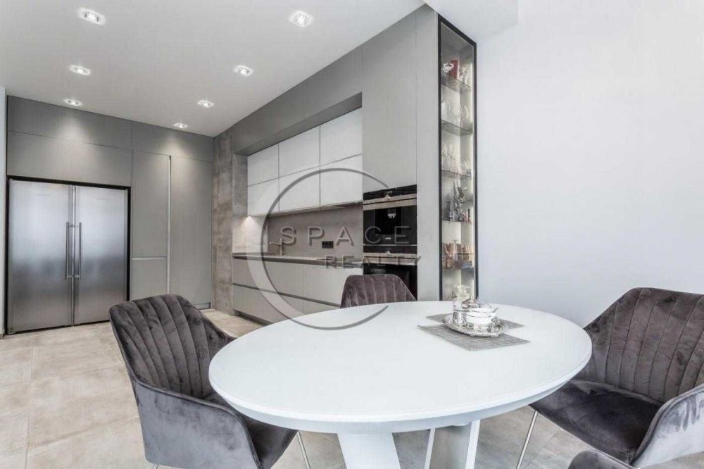 Полностью меблирована итальянкой мебелью Pianca и укомплектована бытовой техникой от ведущих производителей (SIEMENS, LIEBHERR, Falmec). Установлен фильтр для воды на всю квартиру, домофон с видеозаписью звонка, сигнализация, подогрев полов.