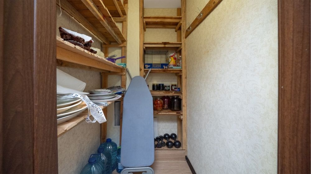 Є комора 1,7 кв.м, обладнана полицями;