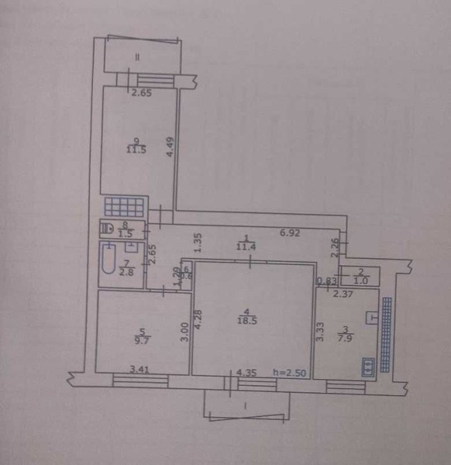 • Площадь кухни 7.9 м2