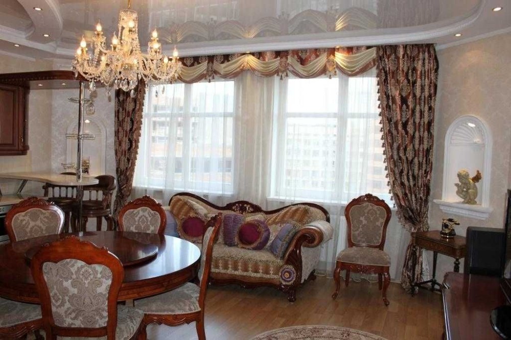 Функціональний класичний дизайн, ексклюзивні меблі та декор, якісні матеріали, багаторівневе освітлення, повний комплект побутової техніки.
