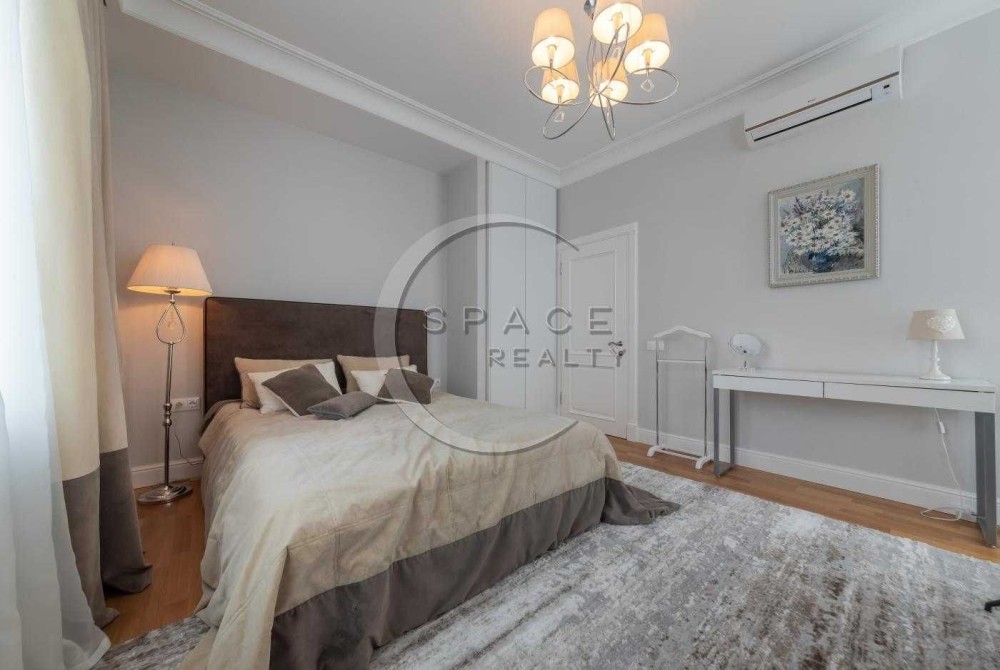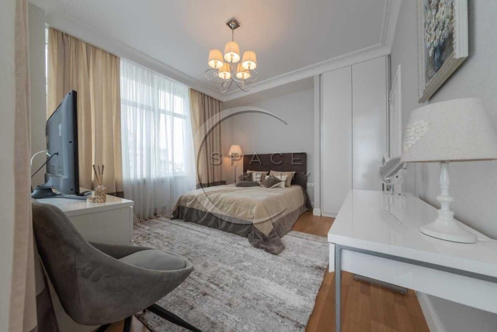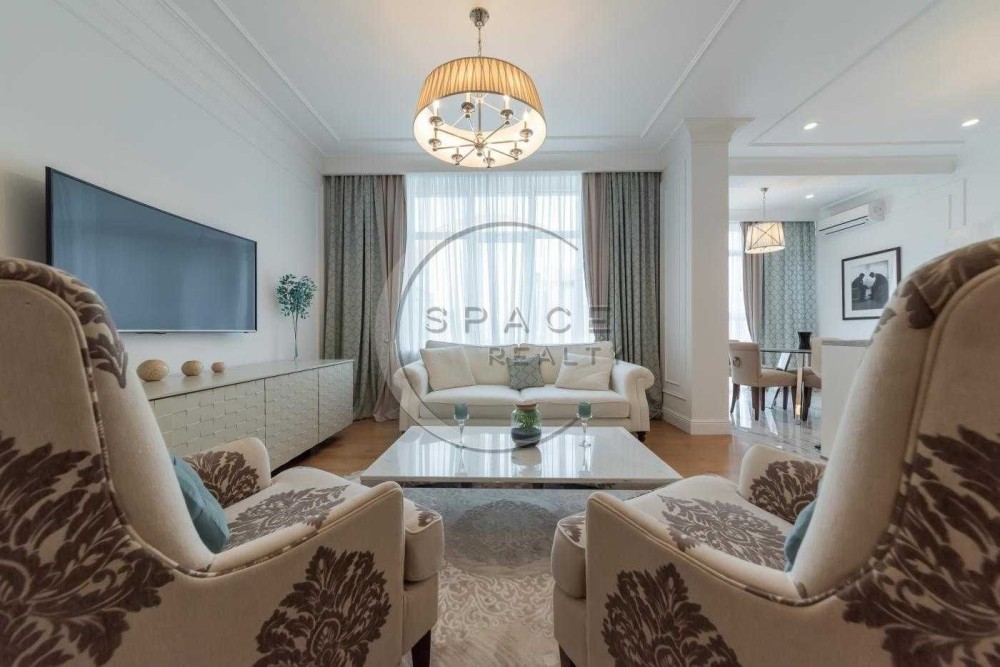 Це житловий комплекс бізнес-класу, а сама квартира знаходиться на високому поверсі. Площа 115м2. Дизайнерський інтер'єр, в якому все продумано до дрібниць: дорогі меблі та побутова техніка від світових виробників. Засклена лоджія дозволяє милуватися краєвидами на місто у затишній атмосфері. По всій квартирі встановлена система кондиціювання, а також система безпеки для комфортного та водночас спокійного життя.